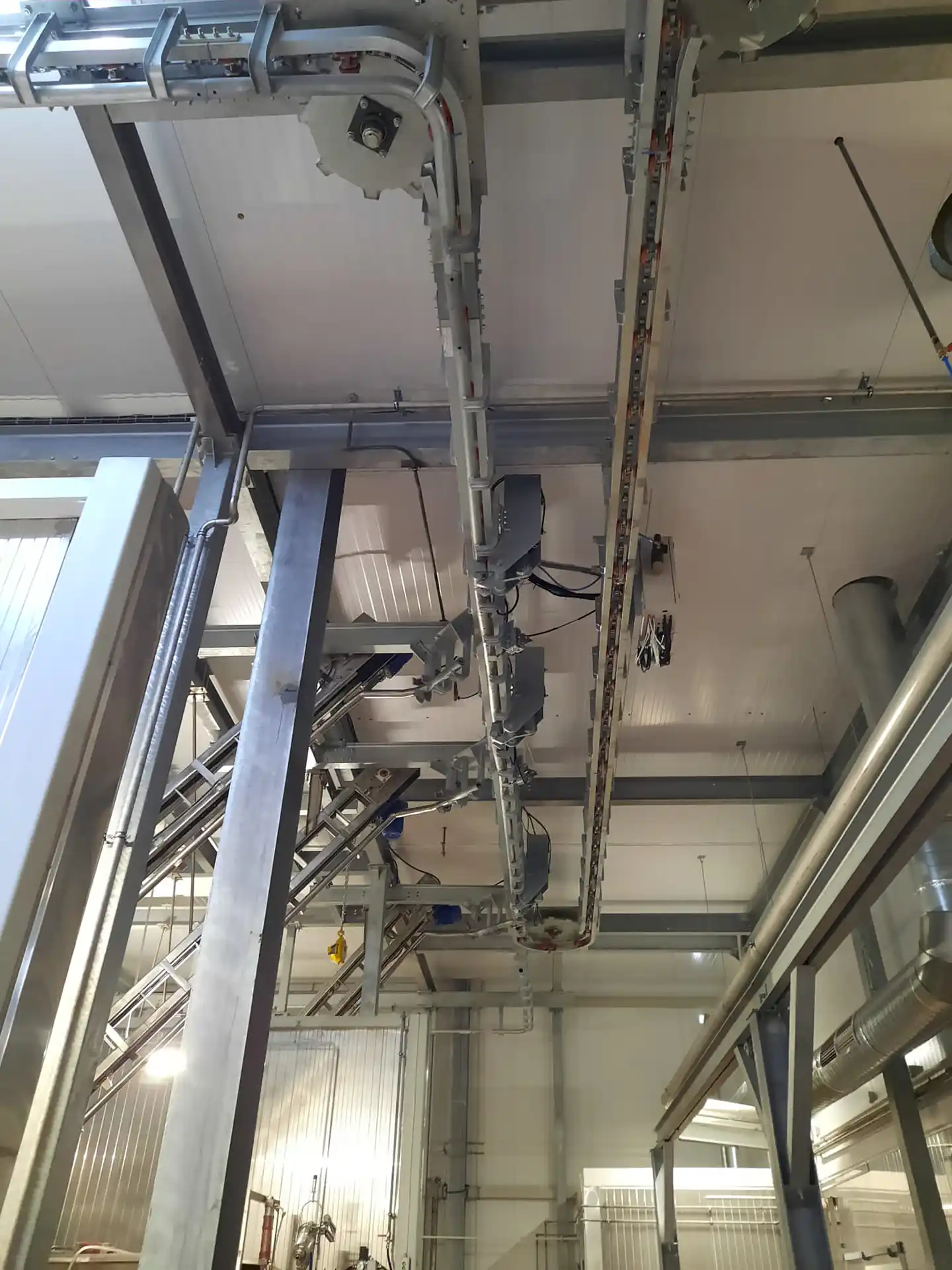 Die Aufgabe des Entlüftungsförderer für Rinder besteht darin, die Rinderschlachtkörper von der Schlachtstelle zur Übergabestelle zu transportieren. Dieses Förderband muss angesichts des Gewichts der Tiere robust und in der Lage sein, die Anzahl der Schlachtkörper zu transportieren, die die Produktion der Linie in der für die korrekte Entblutung erforderlichen Zeit gewährleistet.