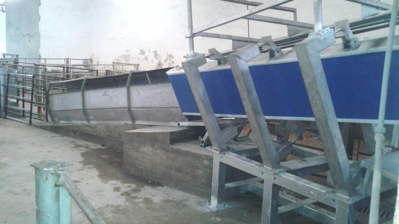 Le restrainer du porc est la machine idéale pour conduire et étourdir électriquement les porcs (par électronarcose). La tâche compliquée qui consiste à conduire les animaux dans les installations est considérablement facilitée par l’utilisation d’un appareil de contention, car il prend les animaux à un niveau zéro et les conduit automatiquement, en les élevant et en les dosant jusqu’au point d’étourdissement. Il doit être placé au-dessus de la table de saignée pour faciliter le positionnement et le dégorgement ultérieur. Cet équipement est idéal pour l’étourdissement à l’aide de pinces et le dégorgement ultérieur sur une table de saignée.